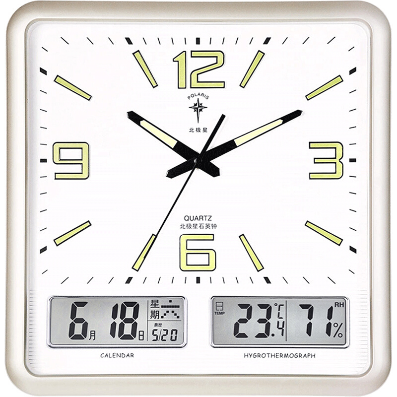 • 北极星(POLARIS)挂钟客厅石英钟万年历钟表简约挂表创意日历办公室时钟6826金色夜光款