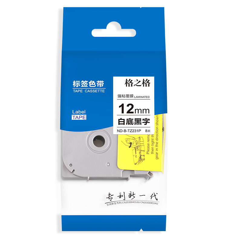 • 格之格 标签色带 适用兄弟标签机色带 12mm TZe-231 白底黑字 标签打印机色带