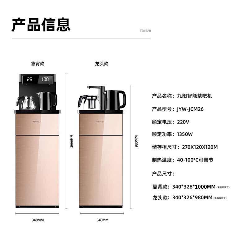 • 九阳(Joyoung) 智能触控茶吧机 饮水机家用立式下置水桶全自动上水智能小型桶装水茶吧机JYW-JCM26