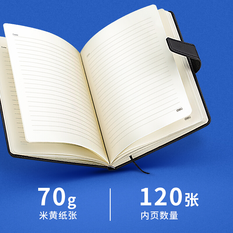 • 得力(deli)16K120张商务磁扣皮面本办公用品 工作记事本会议记录本笔记本子文具 黑色3302