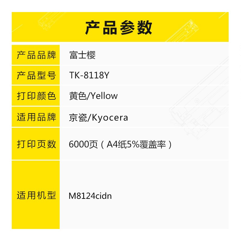 • 富士樱 TK-8118Y黄色墨粉适用京瓷M8124cidn