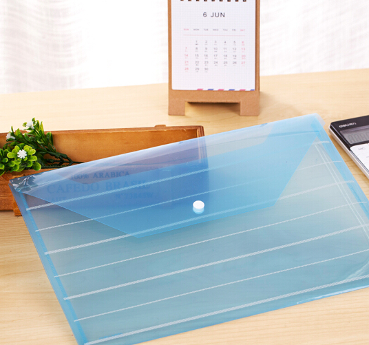 • 得力5630 按扣文件袋A4条纹半透明公文袋学生资料袋试卷 10只装