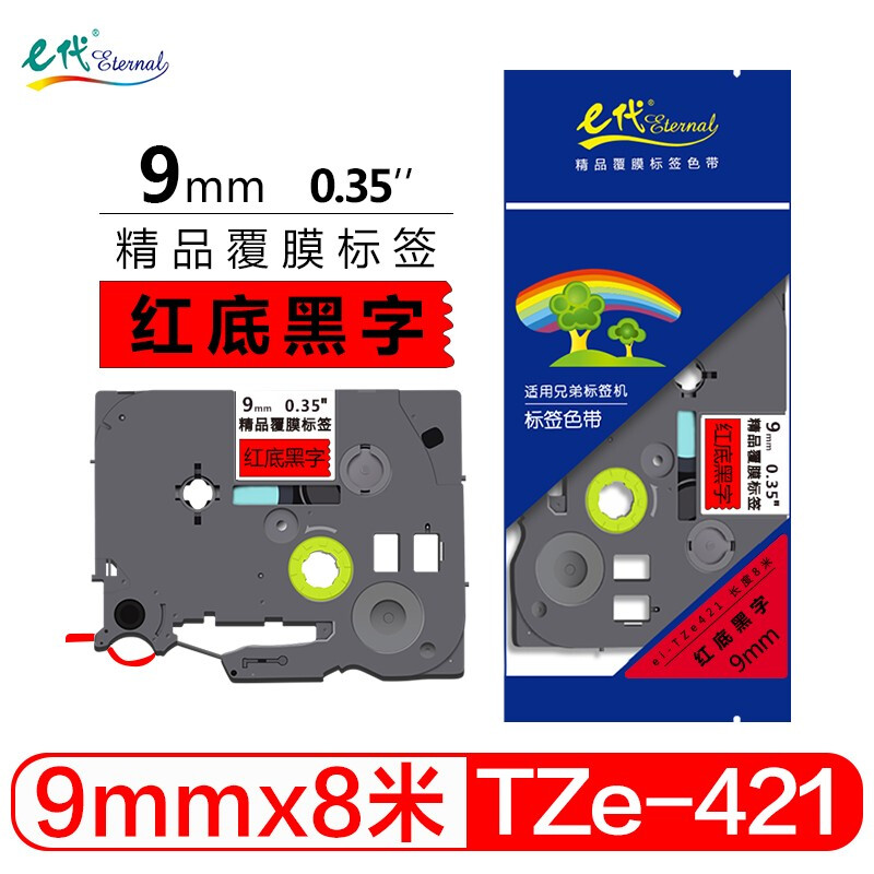 - e代 9mm红底黑字 TZe421标签纸色带 适用兄弟标签机色带 PT-D210 200 600 900 PT-18Rz E550W