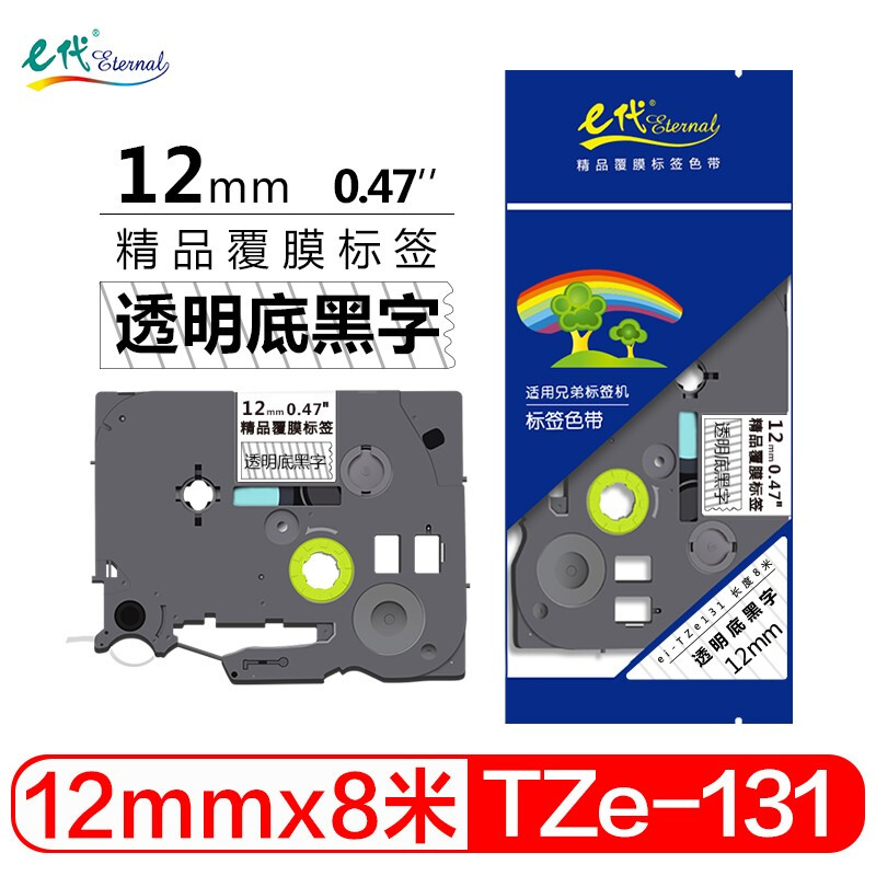 - e代 12mm透明底黑字 TZe131标签纸色带 适用兄弟标签机色带 PT-D210 200 600 900 PT-18Rz E550W