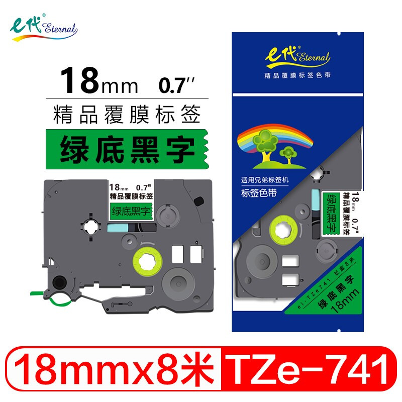e代 18mm绿底黑字标签色带 TZe741标签打印纸 适用兄弟标签机色带PT-E300 PT-18Rz PT-D450