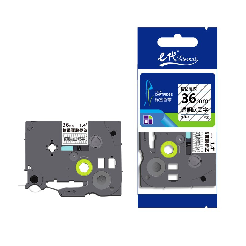 - e代 36mm透明底黑字标签色带 TZe161标签打印纸 适用兄弟标签机色带PT-9700PC PT-3600 PT-900 E800TK