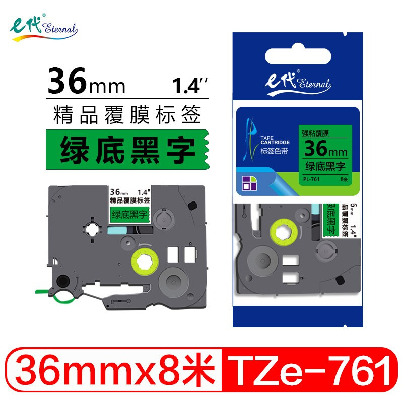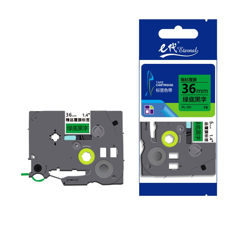 - e代 36mm绿底黑字标签色带 TZe761标签打印纸 适用兄弟标签机色带PT-9700PC PT-3600 PT-900 E800TK