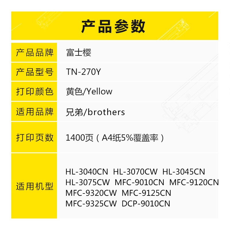 - 富士樱 TN-270Y 黄色墨粉 适用兄弟HL-3040/3045CN 3070/3075CW MFC-9010/9120/9125CN 9320/9325CW