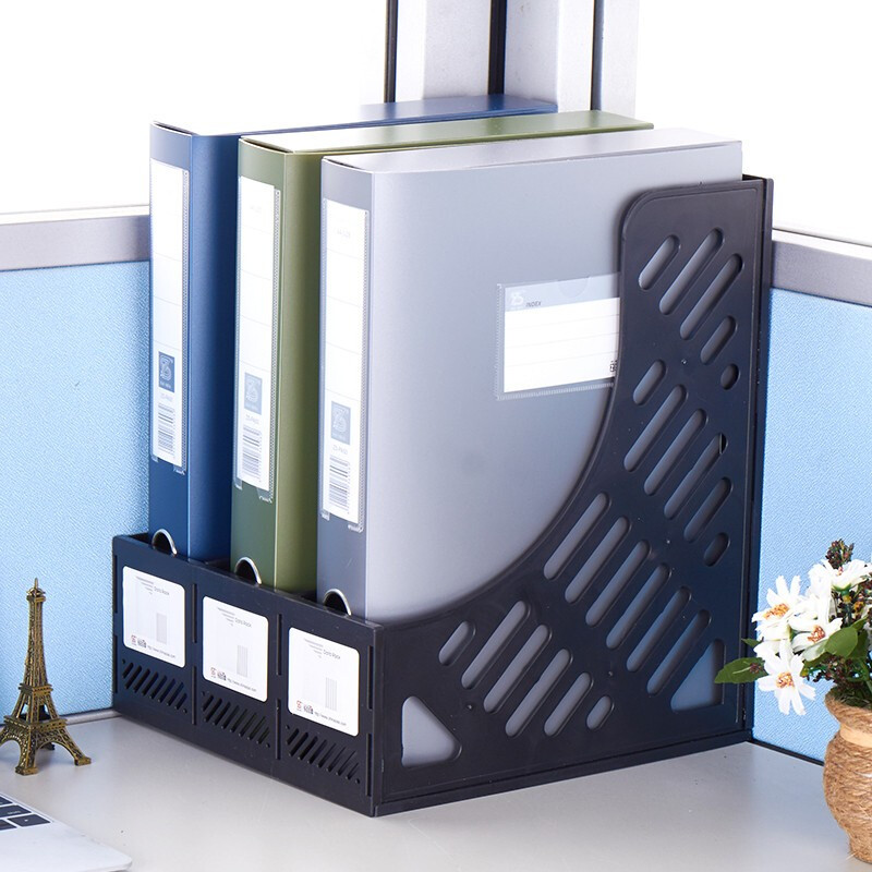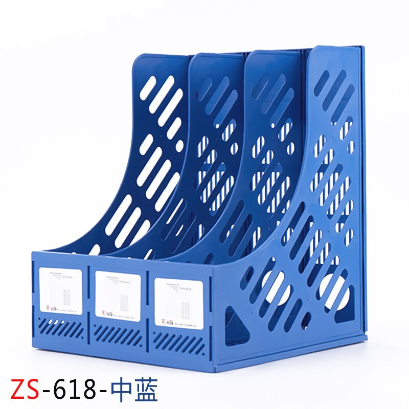 钊盛文具ZS-618文件架三联文件框资料收纳桌面文件栏 中蓝 ZS-618