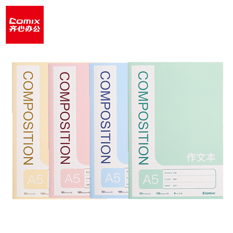 齐心(Comix)A5/50张文具笔记本子软抄本作文本缝线本作业本 12本装 C4244