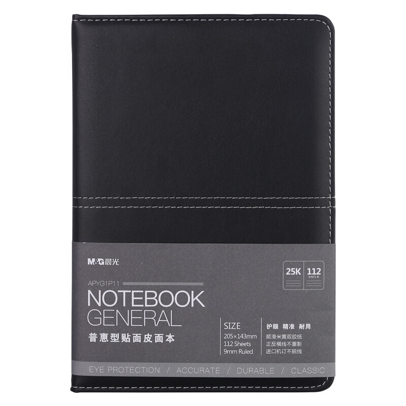晨光(M&G)文具黑色25K/112页办公笔记本 会议记录皮面本 普惠型日记本商务记事本子 单本装APYG1P11