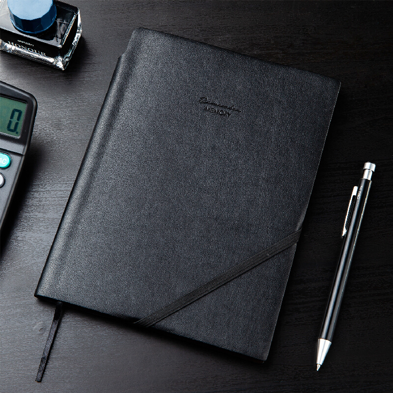 得力(deli)16k96张时尚绑带皮面本 可插笔商务记事本笔记本子文具办公用品 黑色22250