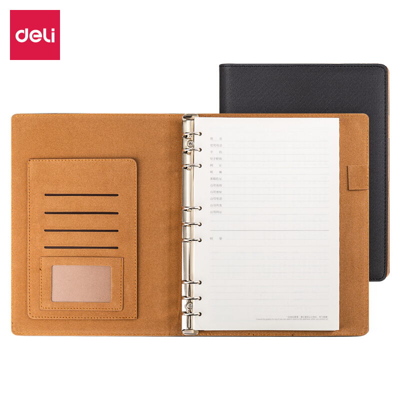 得力(deli)16K100张大号精装活页笔记本子文具 商务记事本皮面本办公用品 黑色33048