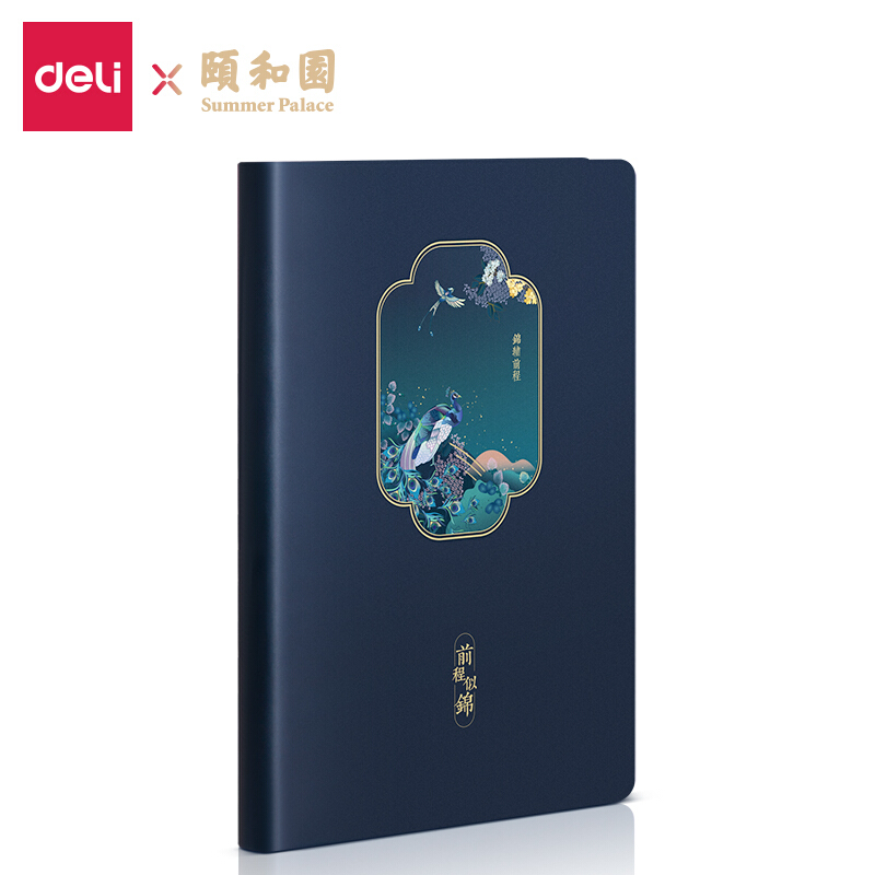 得力(deli)25K120张颐和园系列皮面本 创意古风日记本记事本笔记本子文具 前程似锦款22230
