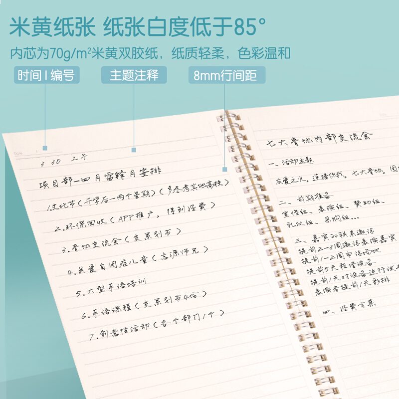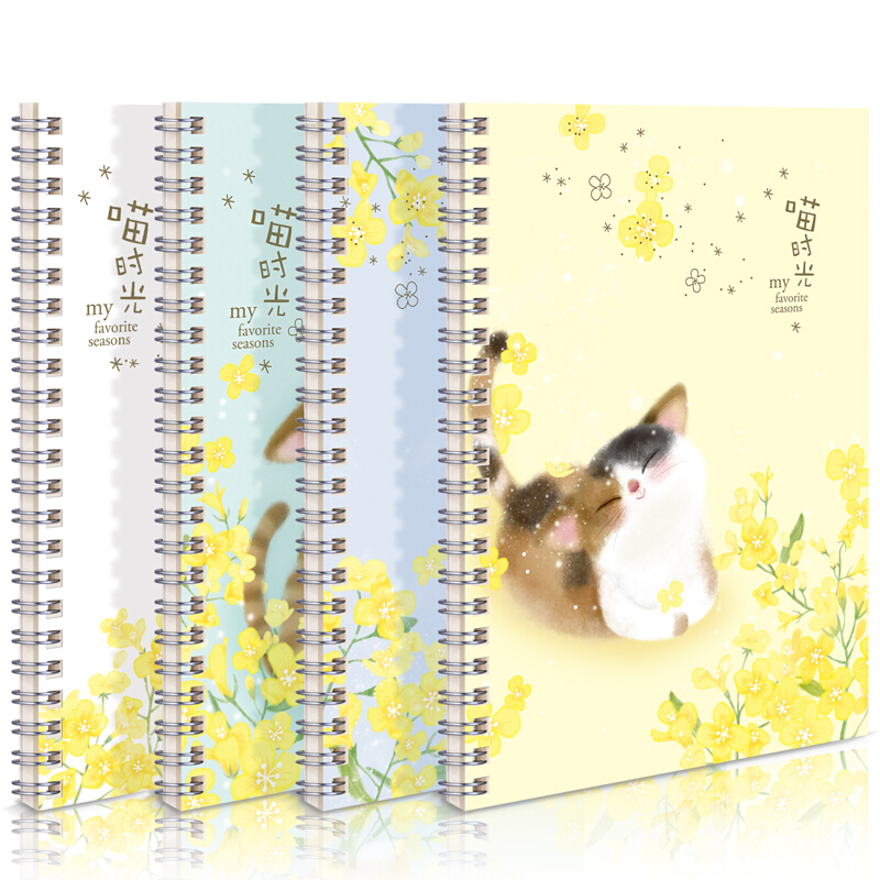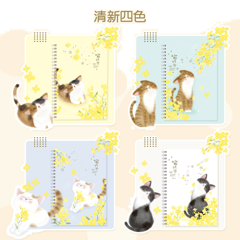 得力(deli)4本A5/60张喵时光系列学生螺旋本线圈本 学生记事本日记本笔记本子文具 LA560