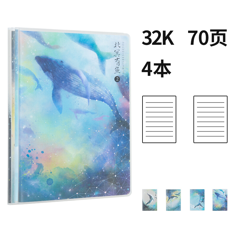 得力(deli)4本32K72张北冥有鱼-幻梦系列学生胶套本套装 软抄本记事本日记本笔记本子文具 T3272-23