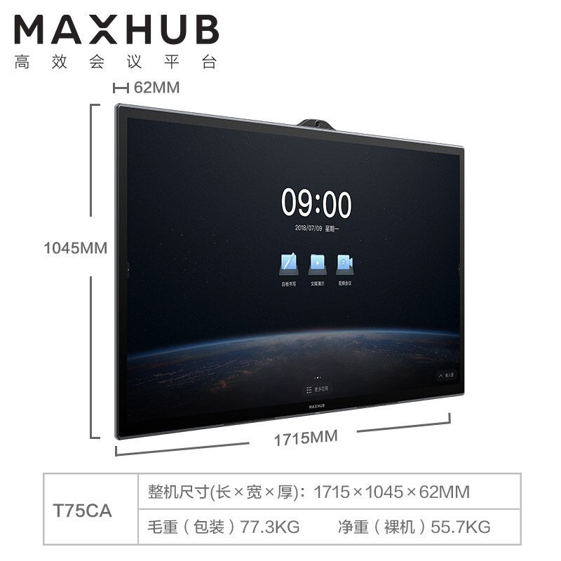 - MAXHUB会议平板V5-科技款视频会议系统交互式触摸一体机商业电容超清显示办公企业智慧屏 75英寸i5(纯PC)五件套套餐