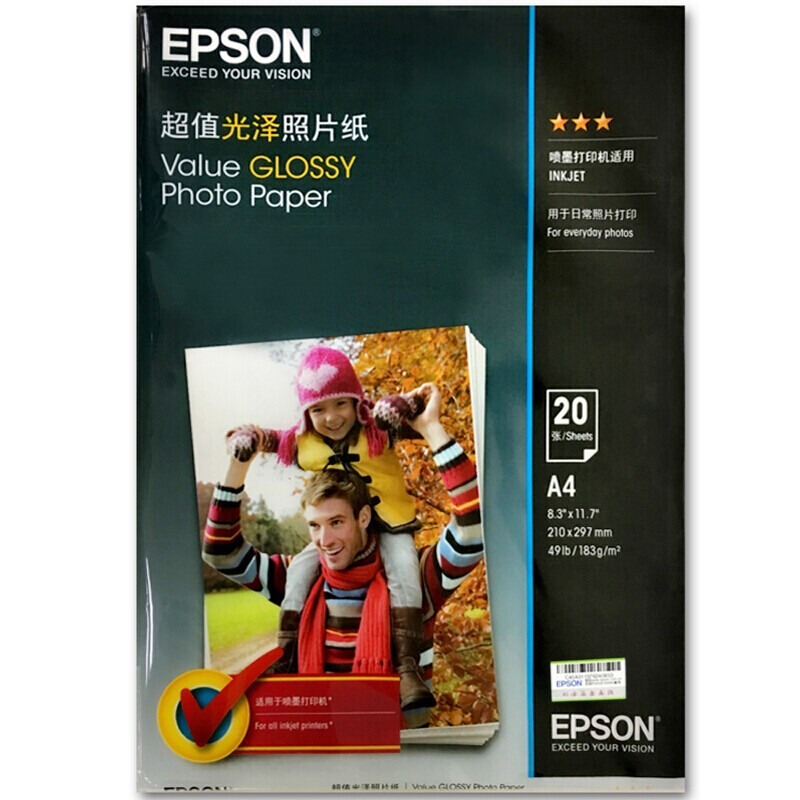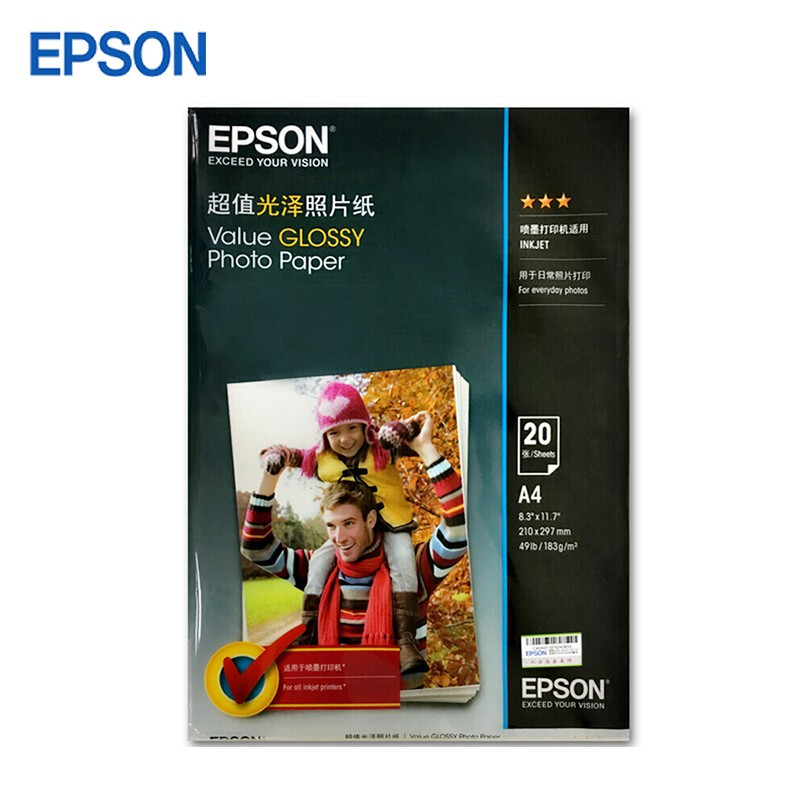 • 爱普生S400040 光泽照片纸 打印纸 相片纸 生活照片打印 证件照片打印 A4/20张
