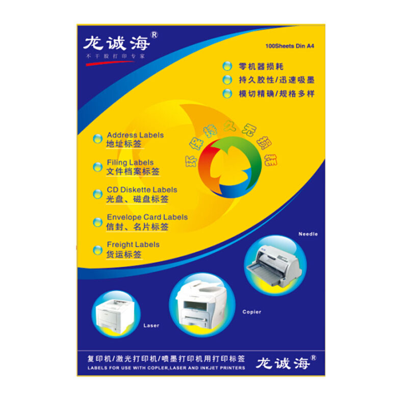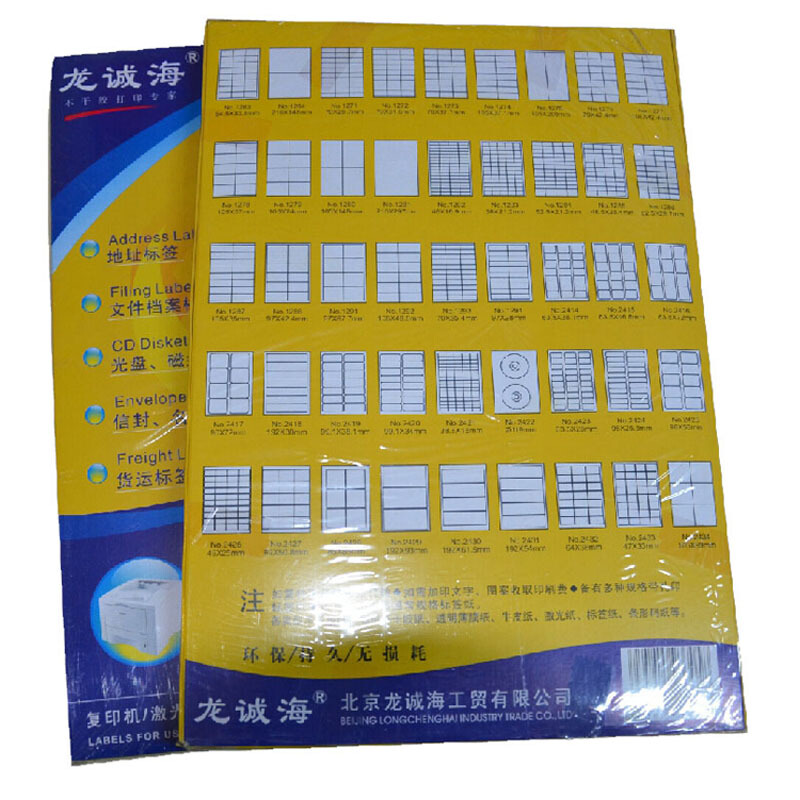龙诚海1263 标签打印纸标签纸不干胶标签纸贴标签纸a4标签贴纸 粘贴纸 哑面