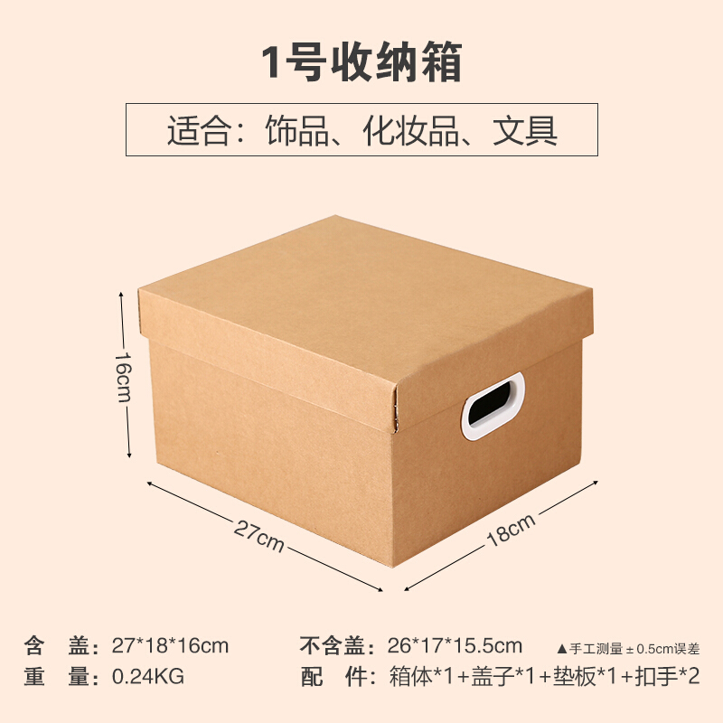 • 牛皮纸收纳盒27*18*16cm 文件箱零食超硬搬家离职有盖整理档案装书收纳纸箱子 1号 一个