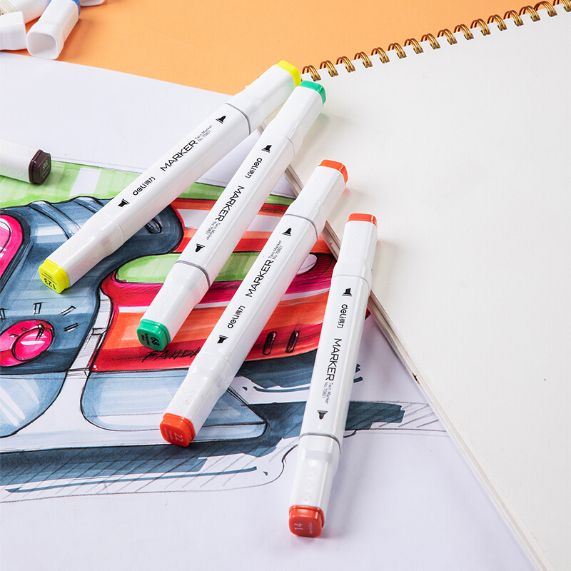 • 得力70801A 双头专业马克笔套装学生手绘漫画设计绘画彩笔画笔6支单色方杆 11号洋红