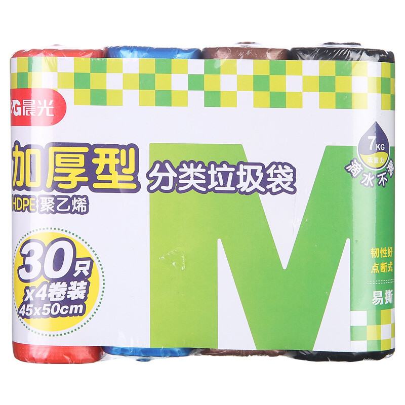晨光(M&G)文具45*50mm/4卷4色加厚型分类垃圾袋 平口清洁袋 垃圾分类 120只装ALJ99432