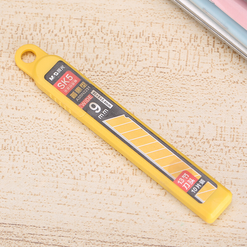 晨光ASSN2231 文具9mm小号美工刀片 精钢SK5不易生锈刀片 替换刀片 10片/盒 单盒装