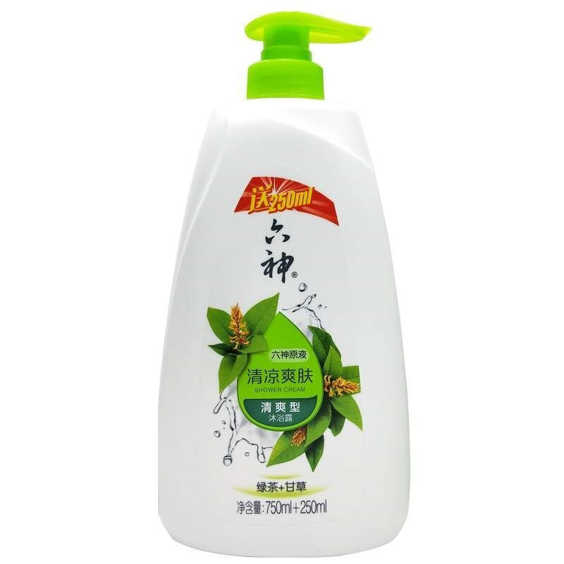 • 六神沐浴露 清凉爽肤绿茶甘草男女留香沐浴露乳家庭装 750ml+250ml
