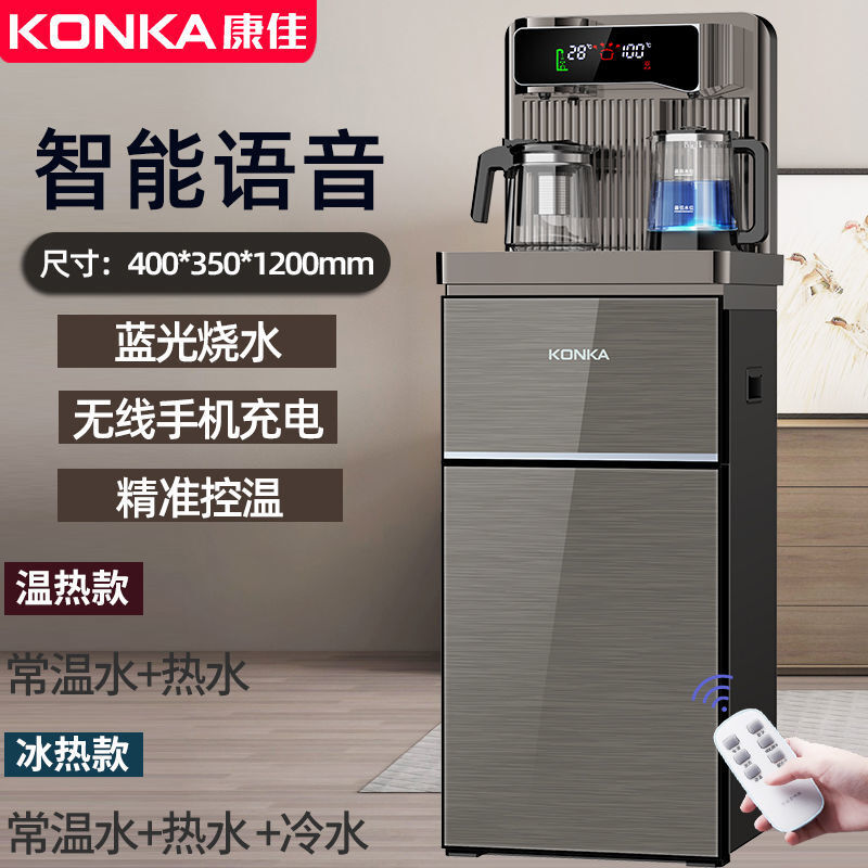 康佳智能语音饮水机茶吧机家用全自动高端大款立式下置水桶一体机 冰温热 语音蓝光杀菌水壶无线充电-摩卡棕