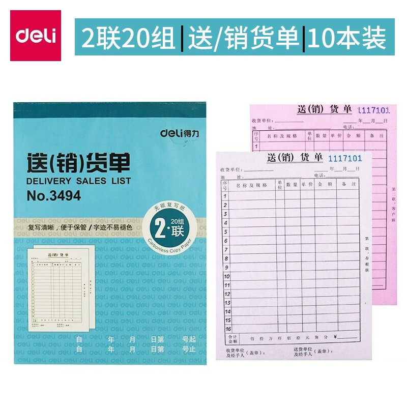 得力(deli) 无碳复写 二联三联单据出入库单收款收据凭证 财务用品10本装 3494二联销货清单(10本装)