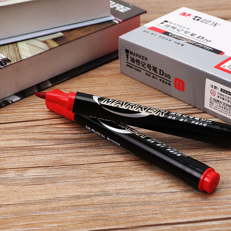 • 晨光APMY2203 红色单头记号笔 油性马克笔 物流笔标记大头笔 10支/盒