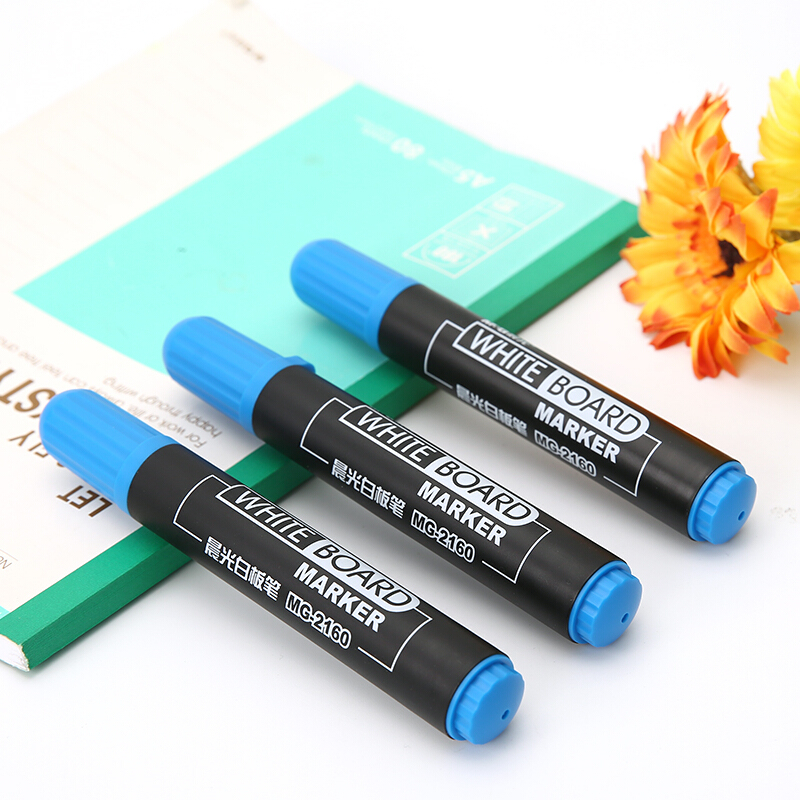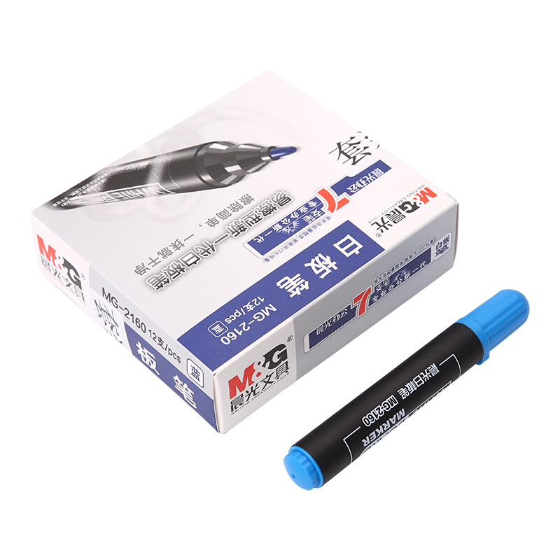• 晨光MG2160 蓝色可擦白板笔 单头办公会议笔 易擦物流记号笔 12支/盒