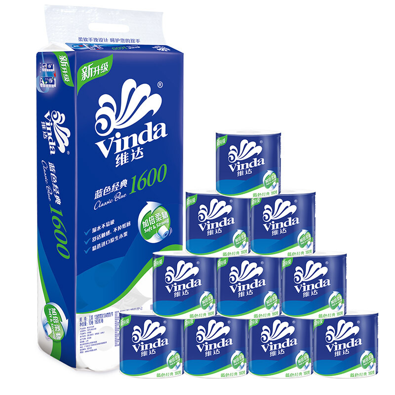 • 维达(Vinda) 卷纸 蓝色经典3层160g卫生纸巾*10卷