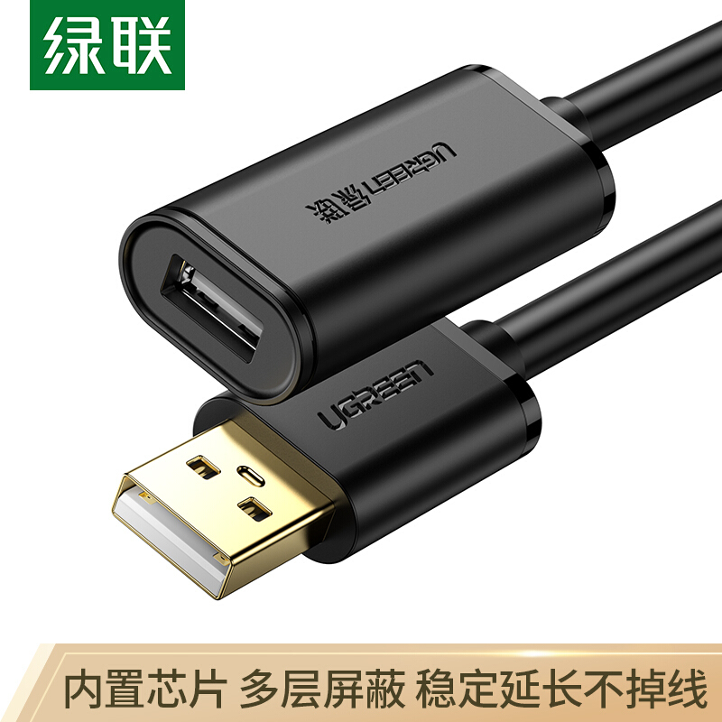 • 绿联10324 USB2.0延长线/延长器公对母 无线网卡打印机摄像头加长线 带信号放大器工程级 20米黑色
