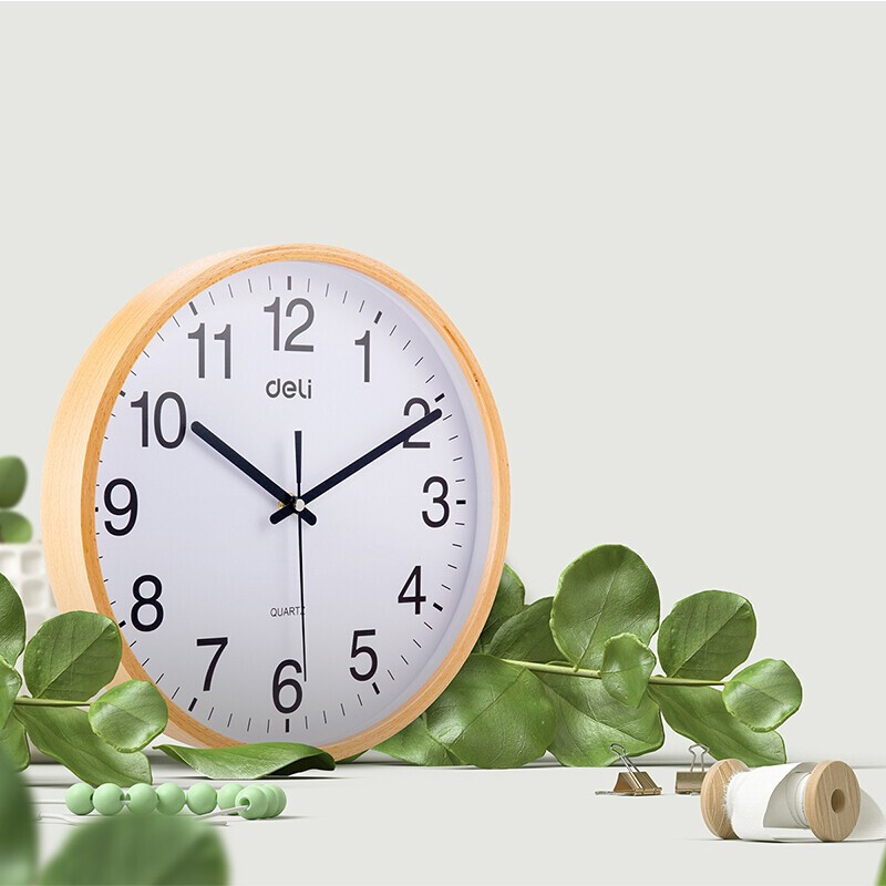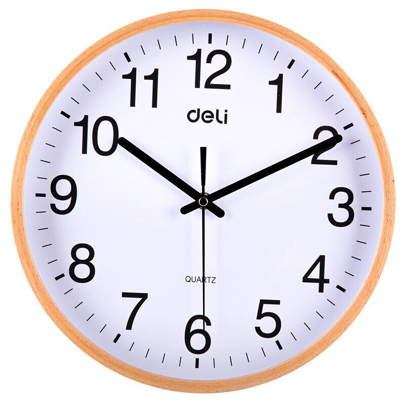 • 得力9006 简约现代圆形时钟 电子时钟挂钟客厅钟表办公钟 颜色随机 木纹 8818 (12寸)