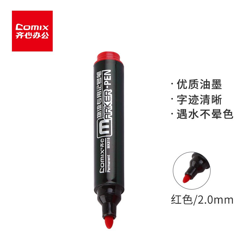 • 齐心MK818 红色粗头物流油性记号笔 大头笔2.0mm 12支/盒 红色