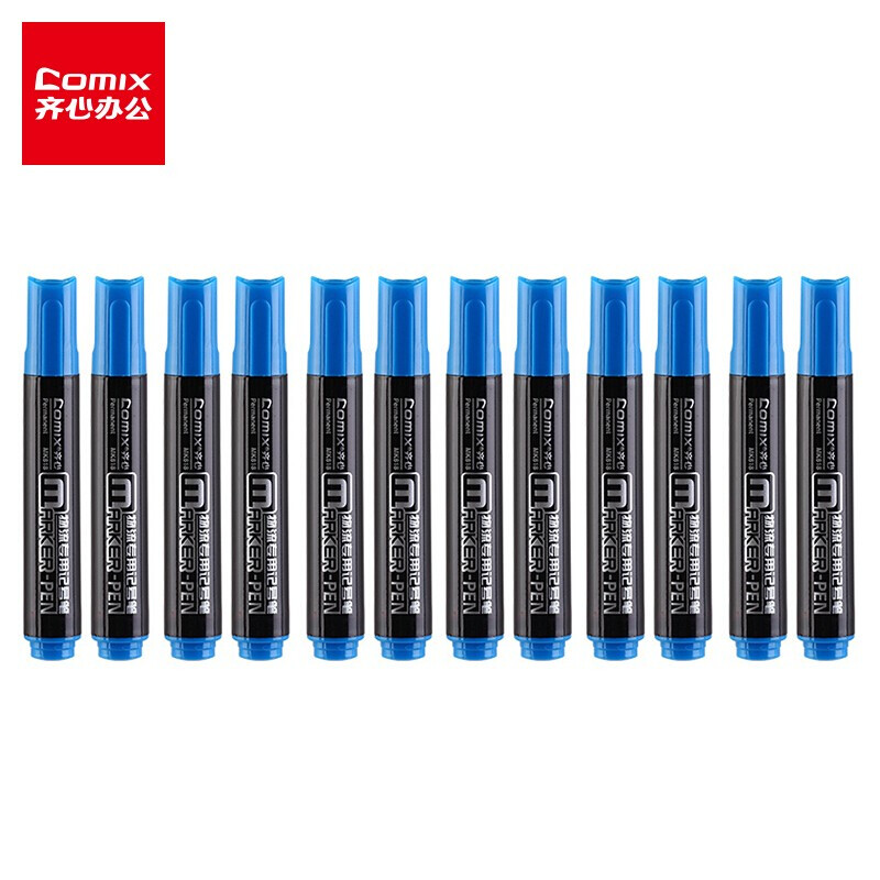 齐心(Comix)黑色粗头物流油性记号笔大头笔2.0mm 12支/盒 办公文具 蓝色(12支装)