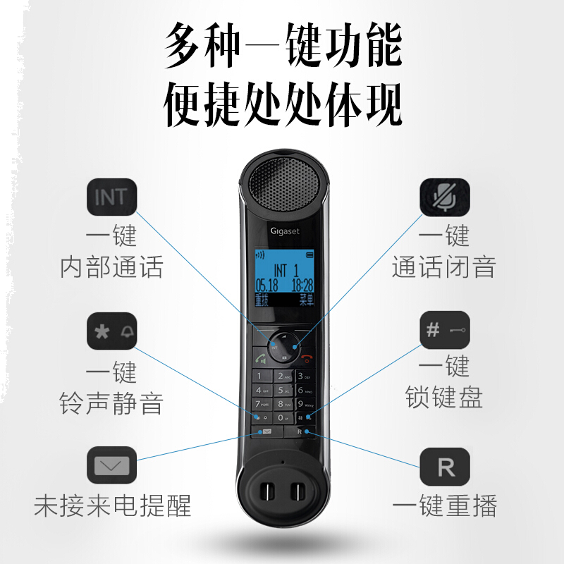 集怡嘉(Gigaset)原西门子 无绳电话机 无线座机 子母机 轻奢时尚艺术电话 中文菜单 E350套装一拖一(黑曜)