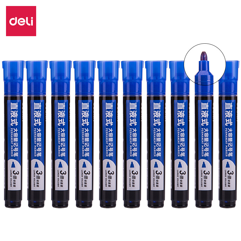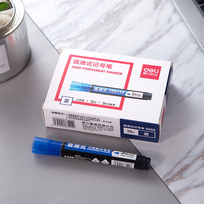 • 得力S568 记号笔粗 3倍大容量耐写物流快递笔 马克笔签到笔批发 蓝色 单支装