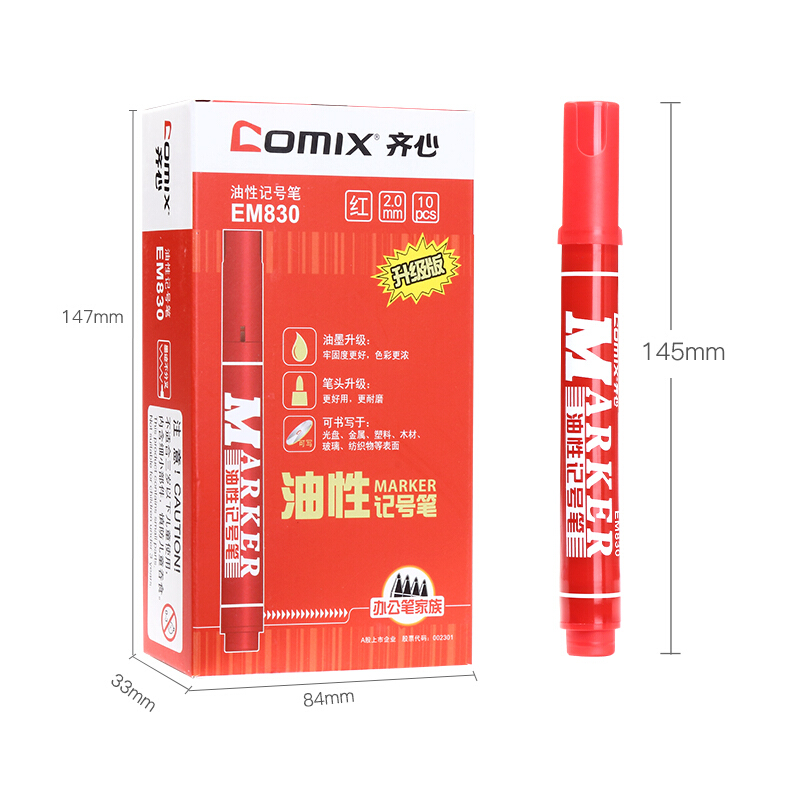 • 齐心(Comix)大粗头防水速干油性物流记号笔/大头笔/签名笔/马克笔 10支/盒 红色 EM830