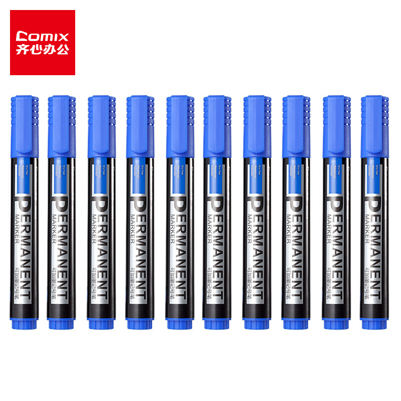 齐心(Comix)蓝色物流专用可加墨油性记号笔大头笔 10支/盒 MK808
