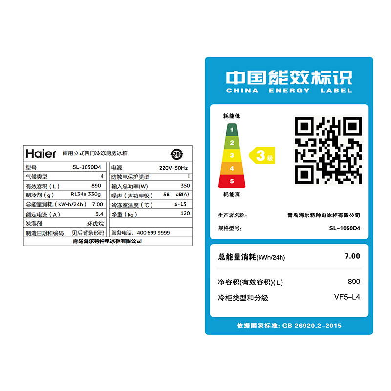 • 海尔 Haier 商用不锈钢四门厨房冰箱 饭店酒店立式冰柜冷柜 SL-1050D4