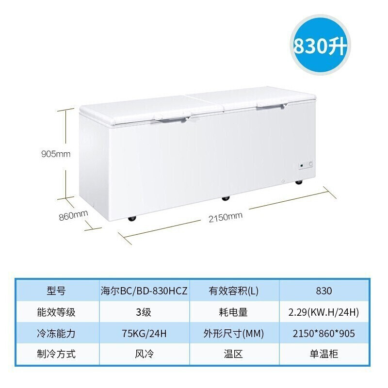 海尔(Haier) 冰柜 大容量 商用冷柜 冷藏冷冻柜 大冷柜 BC/BD-830HCZ 830升
