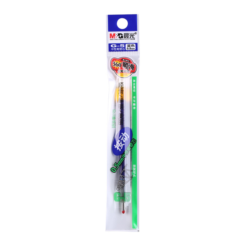 • 晨光G-5 蓝色0.5mm按动子弹头中性笔芯 签字笔替芯 水笔芯20支/盒