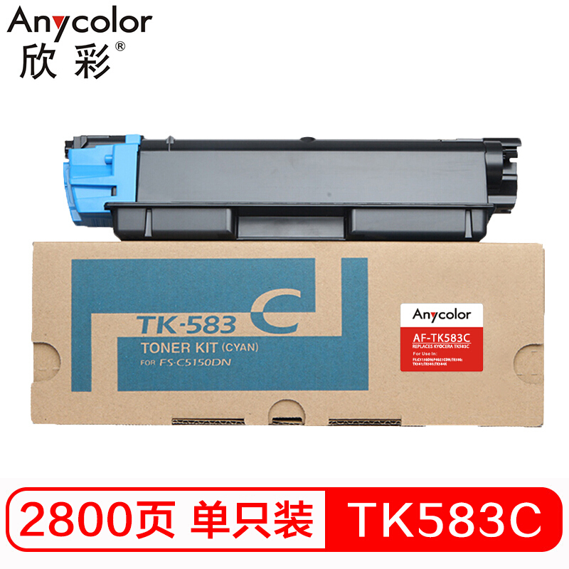 欣彩 TK-583C墨粉盒 AF-TK583C蓝色粉盒 2.8K适用京瓷FSC5150DN P6021cdn 复印机碳粉