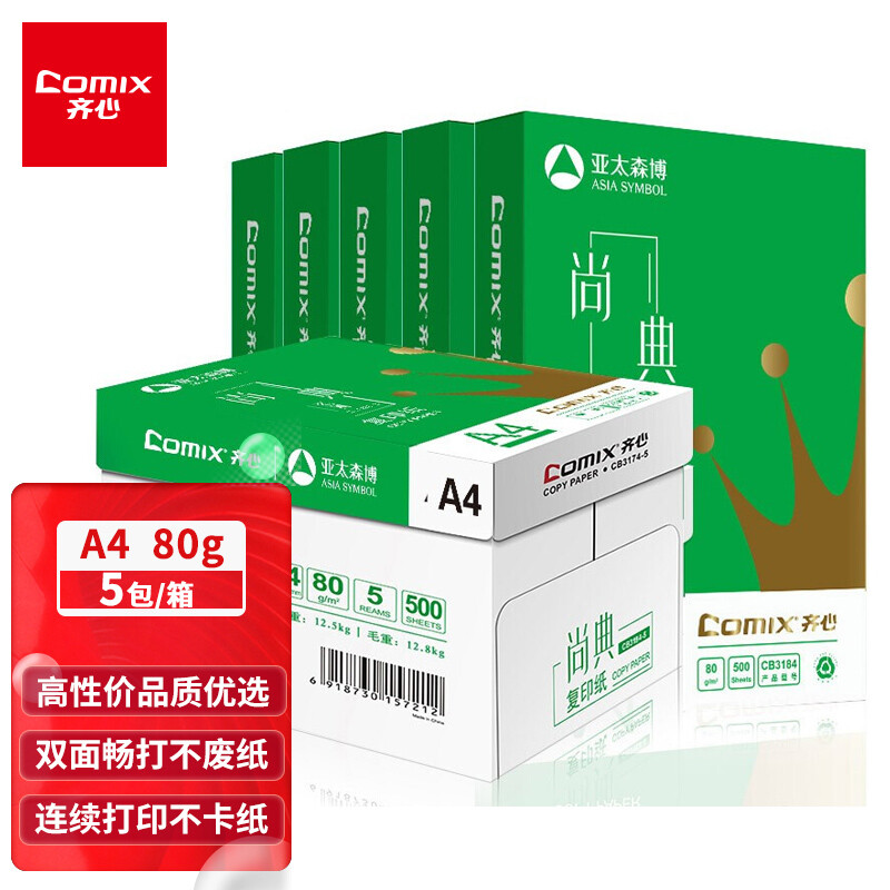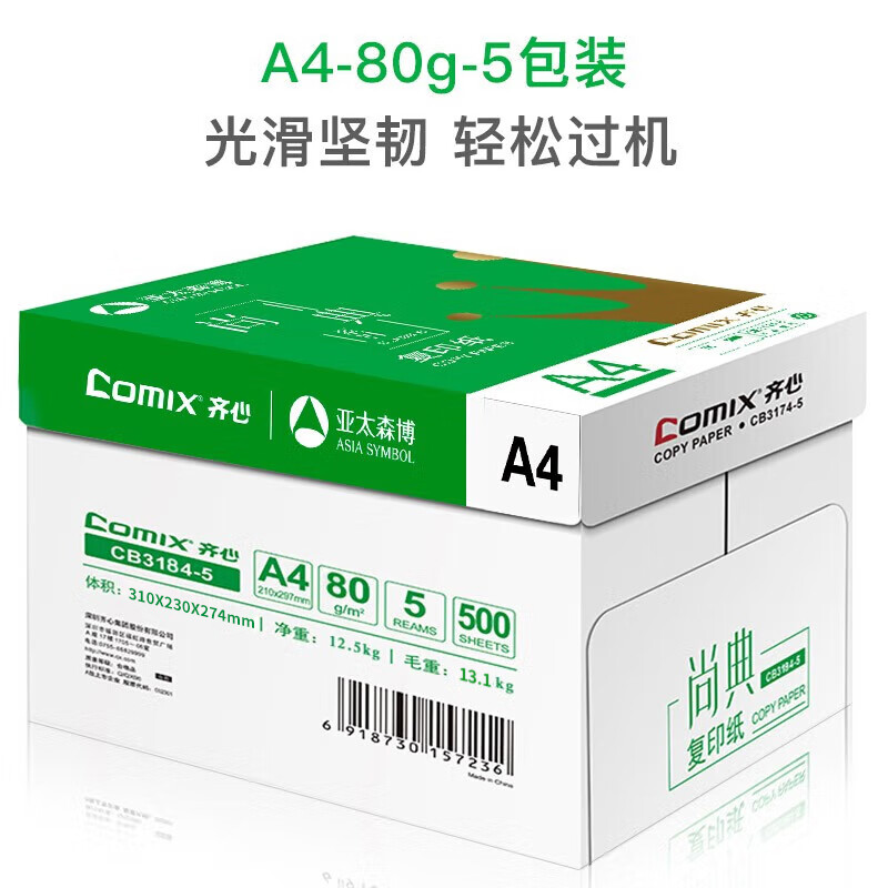 • 齐心(Comix)尚典 80g A4 复印纸 500张/包 5包/箱(2500张) CB3184-5