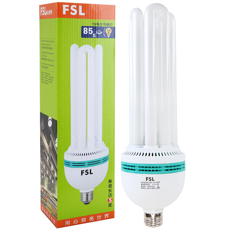 • 佛山照明(FSL)节能灯泡灯管大螺口大功率灯泡日光灯T5-4U-85W-E27白光6500K