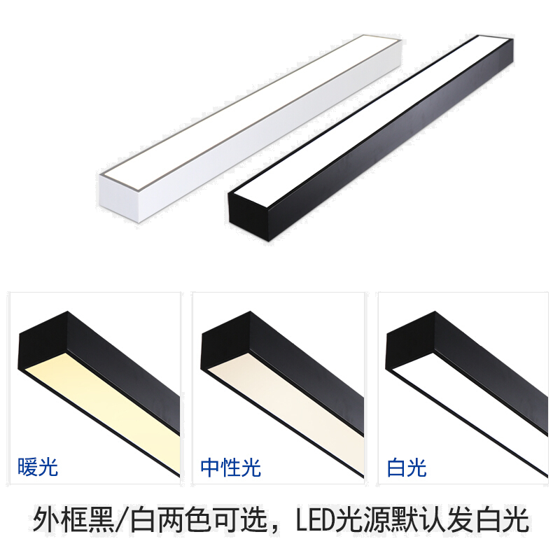 长条吸顶灯led简约现代工程灯会议室商铺网咖手机店吸顶灯 600x100配LED光源吸顶 黑框