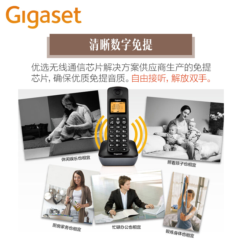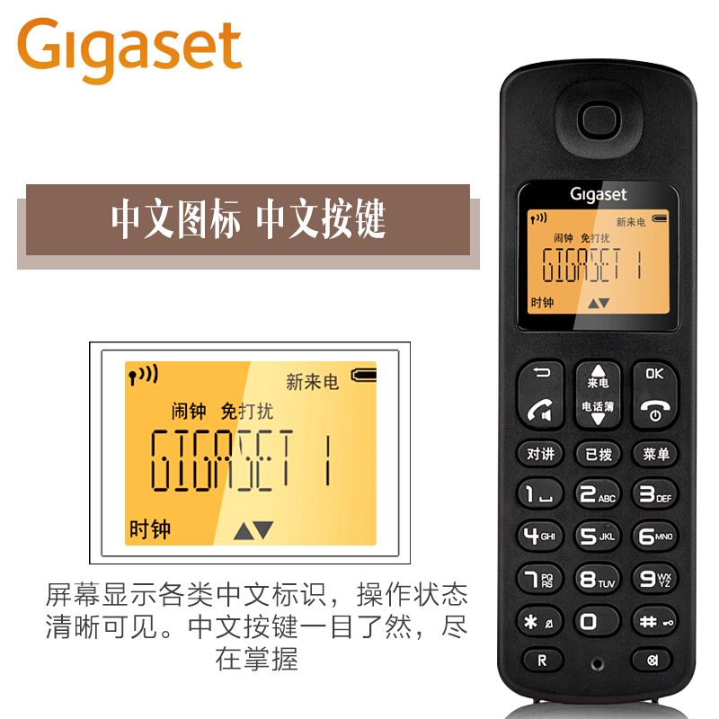 • 集怡嘉(Gigaset)无绳电话机 无线座机 子母机 办公家用 屏幕背光 中文图标 原西门子A190L套装一拖一(岩石白)