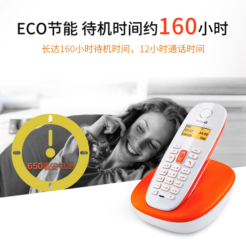 集怡嘉Gigaset 无绳电话机 无线座机 子母机 家用办公固话 高清免提 双向天线 ECO技术 A680单机(橙)